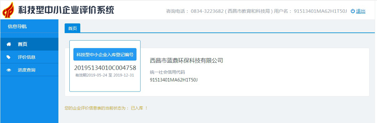 西昌市藍(lán)鼎環(huán)保科技有限公司、攀枝花市藍(lán)鼎環(huán)保科技有限公司于5月10日同時通過四川省科學(xué)技術(shù)廳科技型中小企業(yè)認(rèn)證審核,并在5月10日至5月23日進(jìn)行網(wǎng)上公示,年5月24日兩公司均公示合格獲得科技型中小企業(yè)認(rèn)證入庫編號。