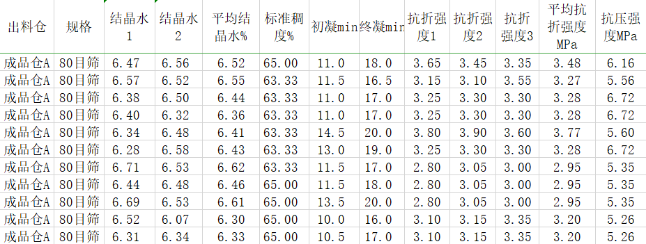 石膏粉生產(chǎn)化驗(yàn)檢測數(shù)據(jù)