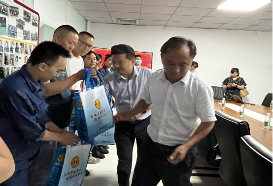 慰問(wèn)現(xiàn)場(chǎng),劉鑫云主席親切問(wèn)候了奮戰(zhàn)在高溫一線的員工并送上了慰問(wèn)品。